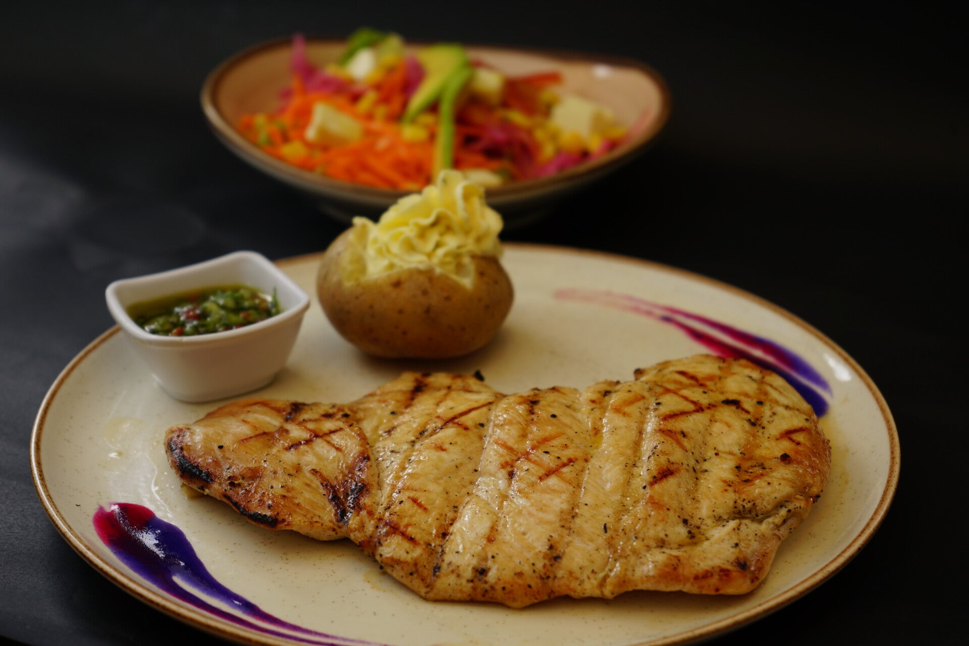 400 Gr de pechuga de pollo, acompañado de papa sour cream, chimichurri y ensalada de la casa.