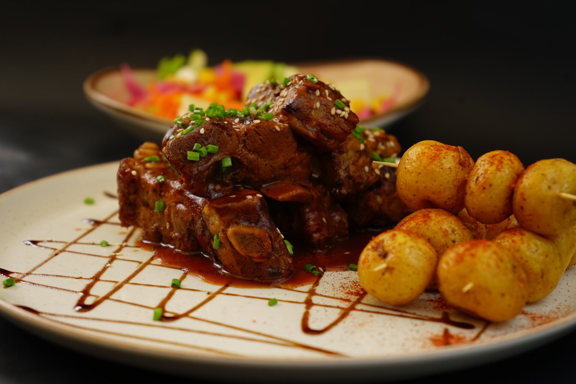 400 Gr de costillas de cerdo bañadas en salsa BBQ, acompañado de papa criolla ensalada de la casa.